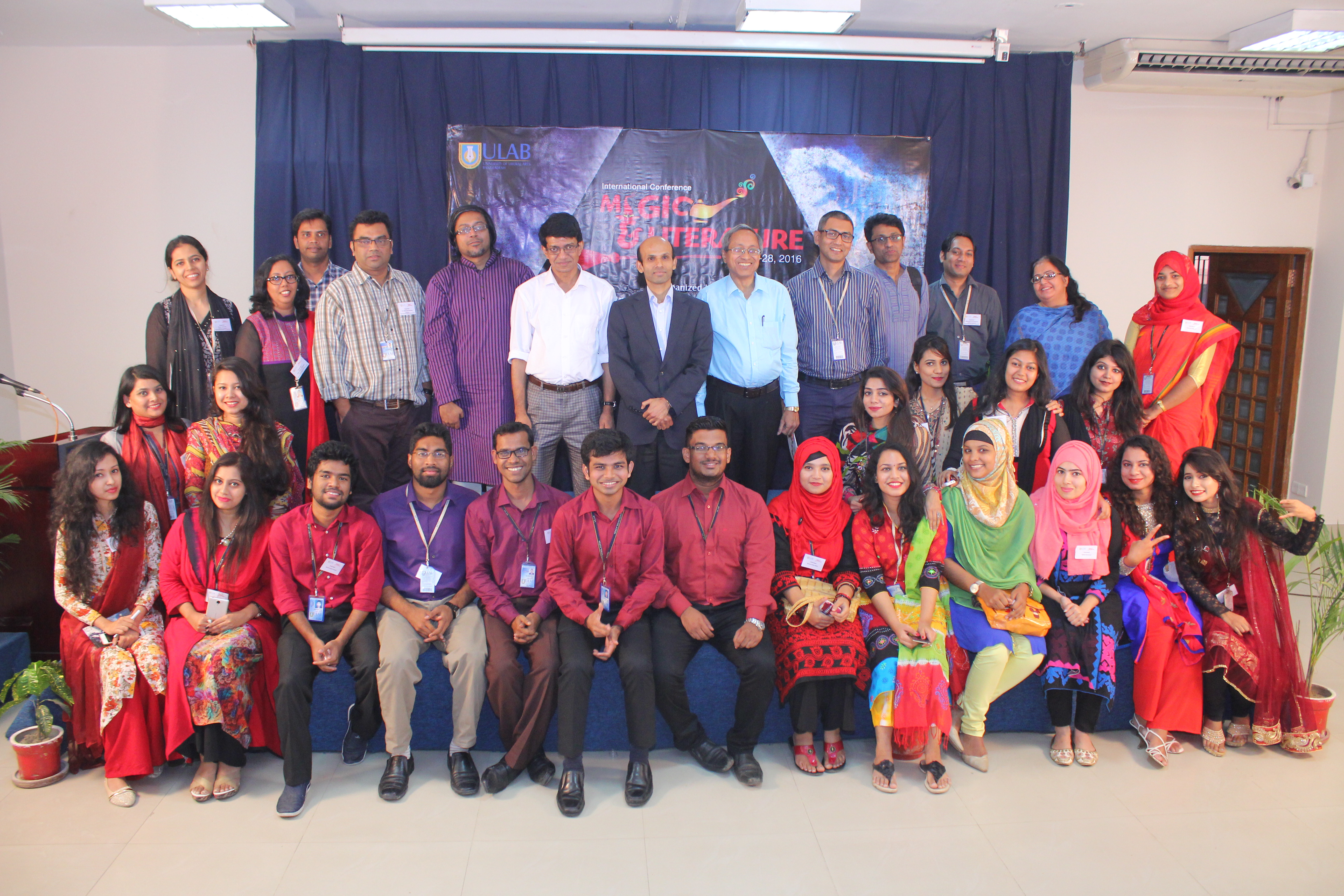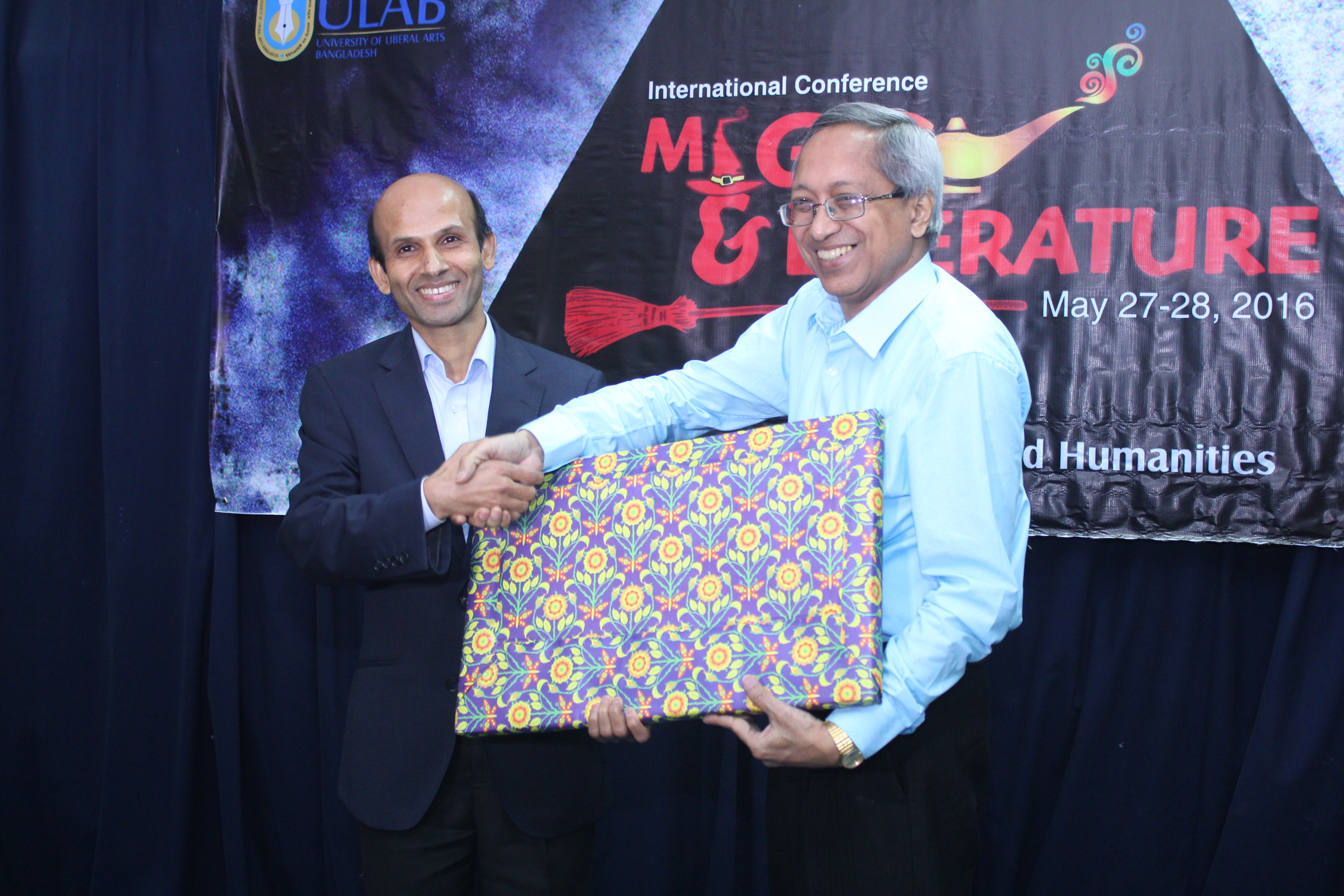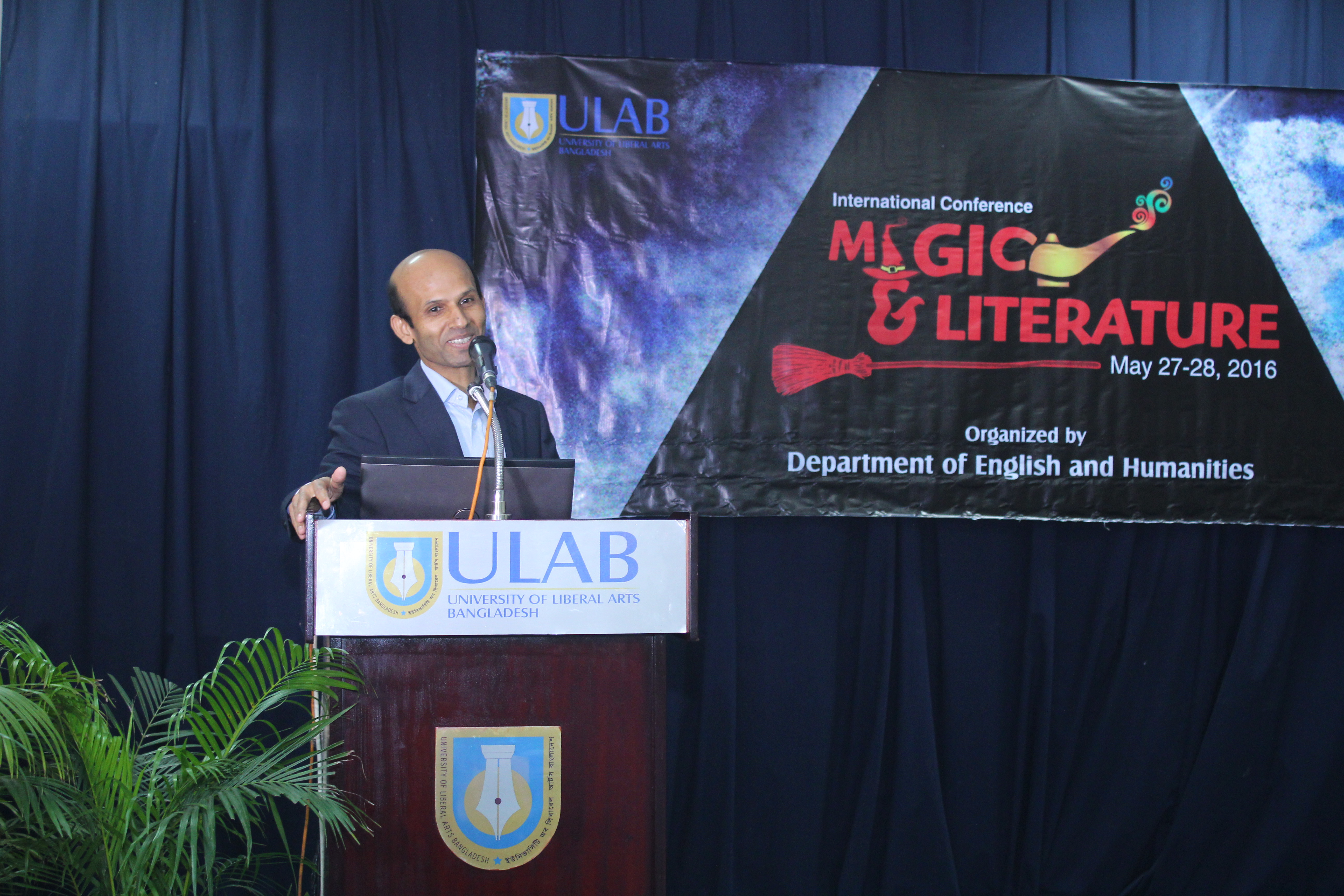 The Department of English and Humanities held an international conference titled “Magic and Literature” on Friday and Saturday, May 27-28, 2016. The highlights of the program included the keynote speech by Professor Subir Kumar Dhar; plenary speech by Dr. Azfar Hussain; panel discussion on Magic in Bangla Literature by Dr. Azfar Hussain (moderator), Poets Mohammad Rafiq, Shamim Reza, and Razu Alauddin; and, plenary discussion on Caribbean and shamanic literature by Dr. Joshua Yu Burnett (moderator), Dr. Shamsad Mortuza and Mashrur Shahid Hossain. In total, seventy-two academics from Bangladesh and abroad presented their scholarly works. The conference also featured magic demonstration by Professor Subir Kumar Dhar and video art installation by renowned artist Laila Sharmeen.