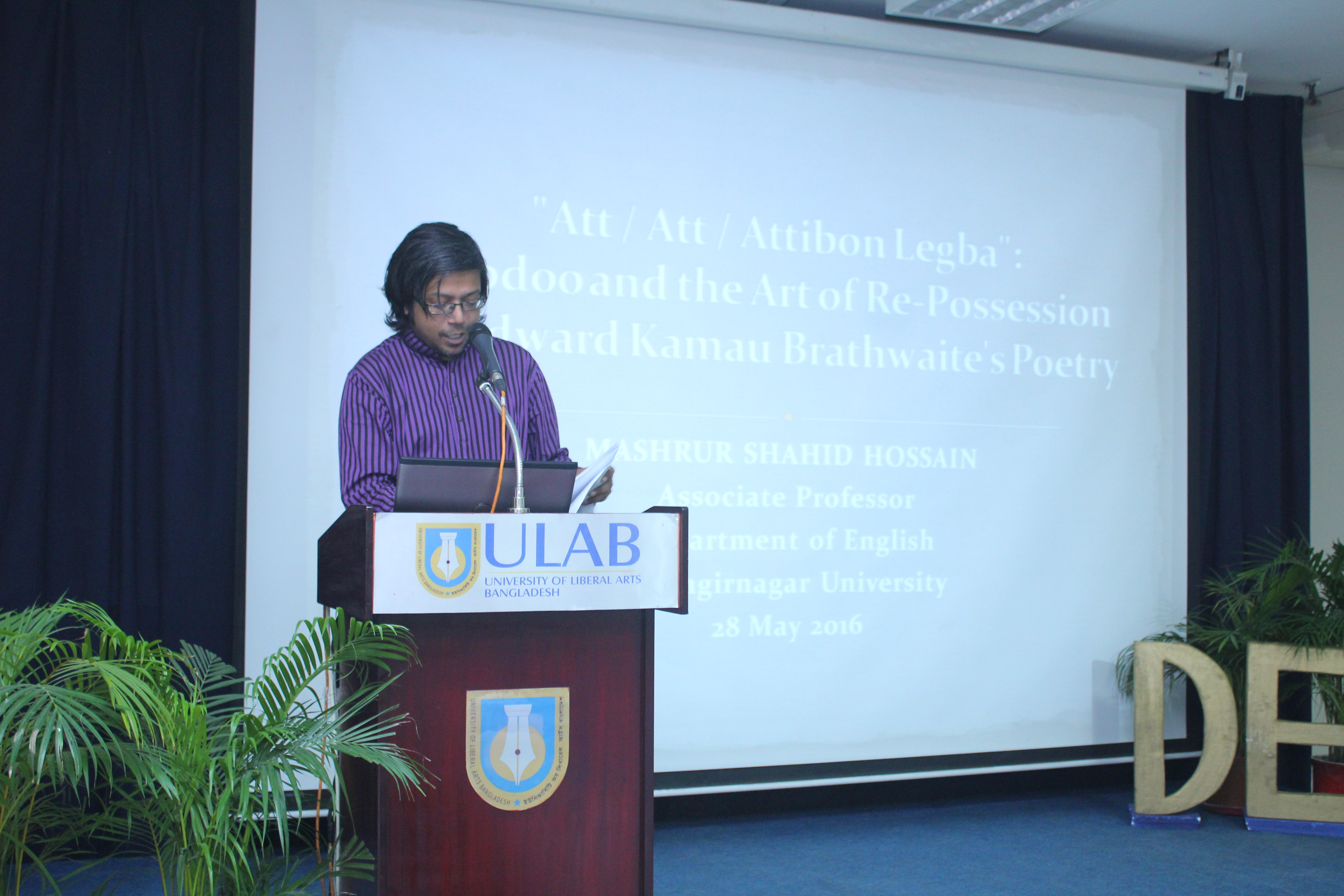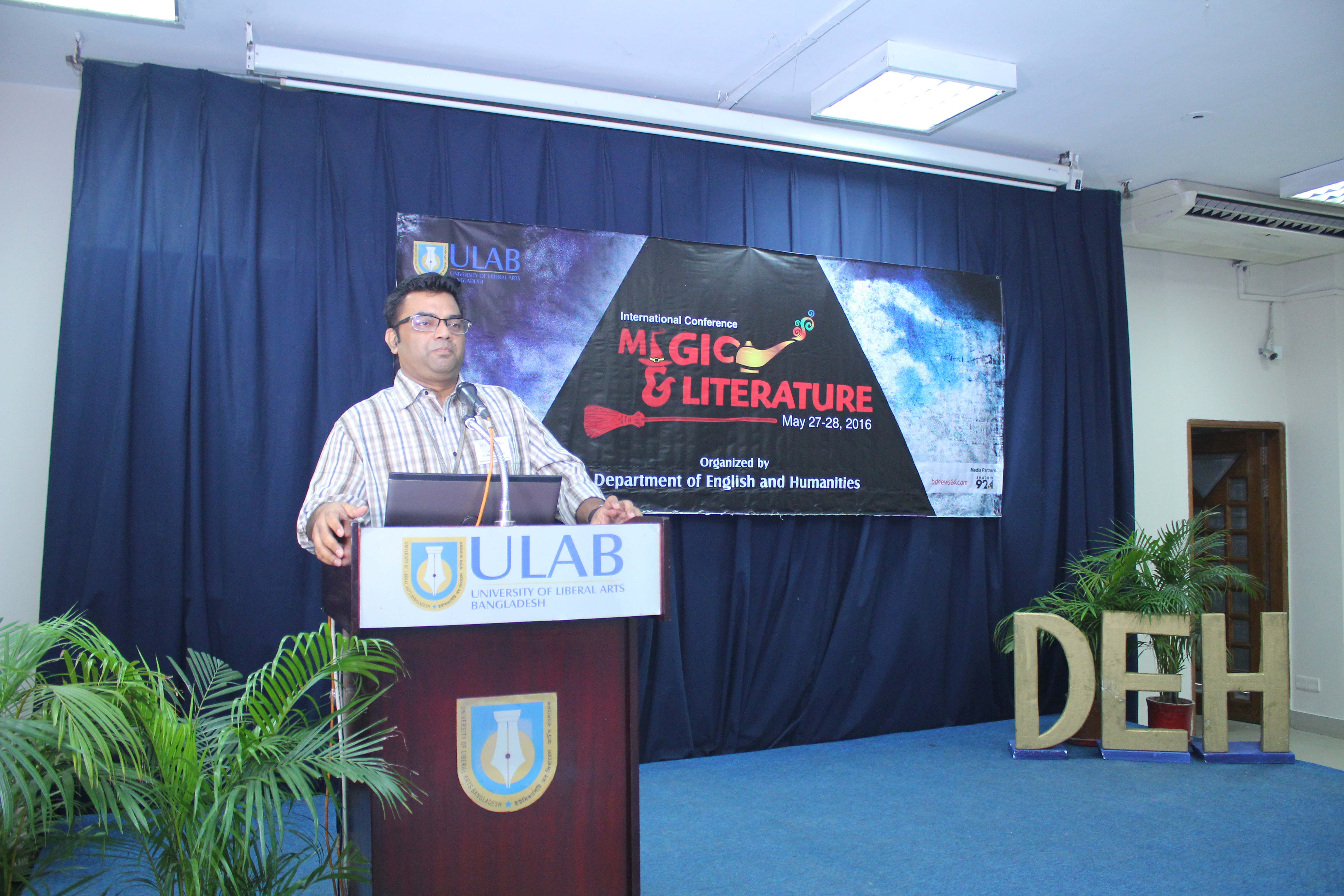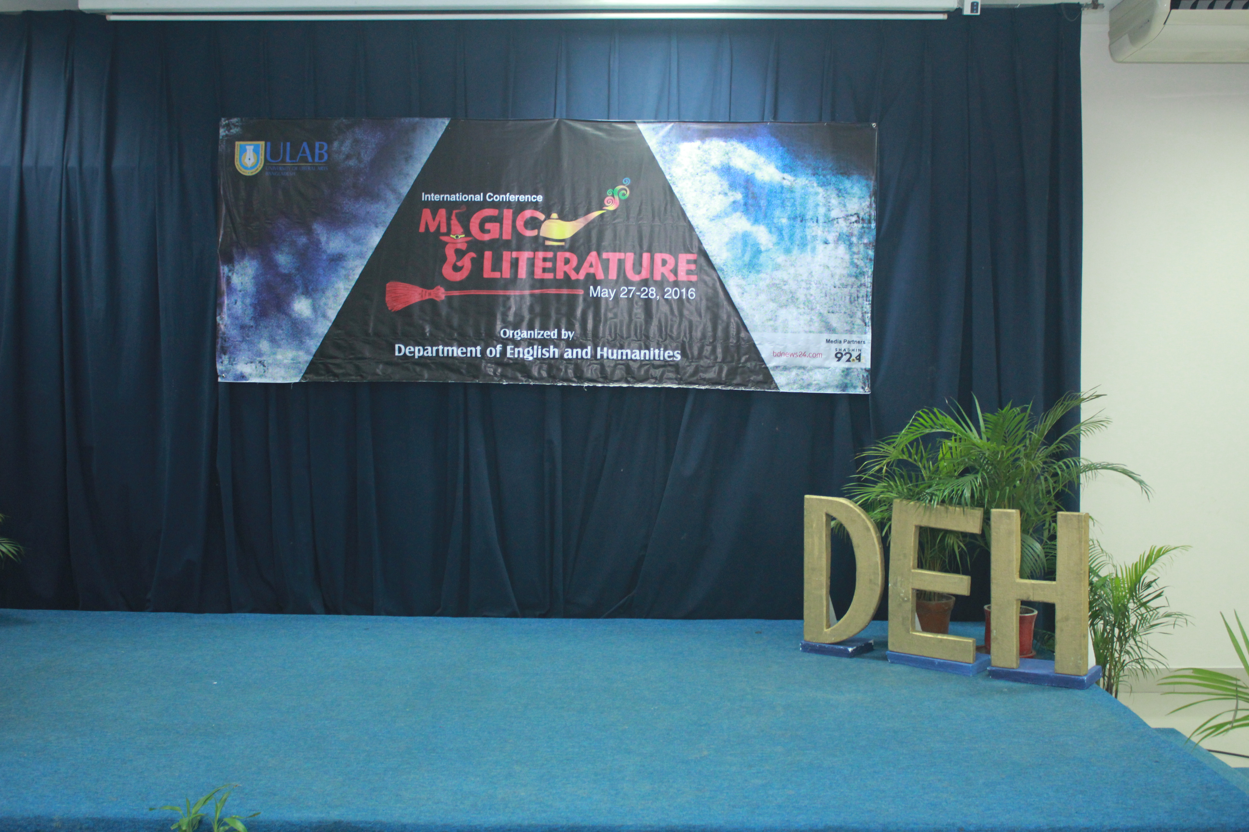 The Department of English and Humanities held an international conference titled “Magic and Literature” on Friday and Saturday, May 27-28, 2016. The highlights of the program included the keynote speech by Professor Subir Kumar Dhar; plenary speech by Dr. Azfar Hussain; panel discussion on Magic in Bangla Literature by Dr. Azfar Hussain (moderator), Poets Mohammad Rafiq, Shamim Reza, and Razu Alauddin; and, plenary discussion on Caribbean and shamanic literature by Dr. Joshua Yu Burnett (moderator), Dr. Shamsad Mortuza and Mashrur Shahid Hossain. In total, seventy-two academics from Bangladesh and abroad presented their scholarly works. The conference also featured magic demonstration by Professor Subir Kumar Dhar and video art installation by renowned artist Laila Sharmeen.