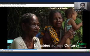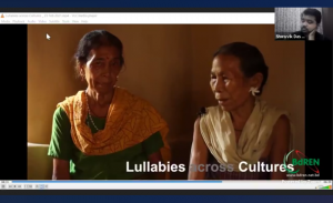 Prof. Kaiser Haq acting as the moderator. All three panelists are from the Department of English and Humanities, ULAB. The panelists emphasized that the Bangla learning and speaking scenario in Bangladesh must improve alongside English. They argued for designing an effective educational policy in Bangladesh to address these issues. A highly thought-provoking session on ‘Lullabies across Cultures’ by Showvik Das of UNHCR followed. Das shared his experience of collecting lullabies from different cultures across Bangladesh and provided an insightful interpretation of the lyrics and their association with the socio-cultural realities of our world.