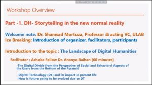 The Department of English and Humanities at the University of Liberal Arts Bangladesh organized a workshop titled “Introducing Digital Humanities: The New Horizon of Humanities and Storytelling Scholarship” on July 1, 2021. The workshop garnered attention from students and faculty members from all departments as this is a relevant and trending area of study.