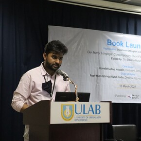 Poet Mohammad Nurul Huda, Director General, Bangla Academy, graced the occasion as the Guest of Honor. In his speech, Mr. Huda remarked that the stories in the book, Our Many Longings, depicted a number of conflicting issues which formed a good premise. Referring to the translations, the poet spoke of how the world became one during the pandemic despite the language barriers. He also speculated for a time when there might be one state and one language, where everyone in the world would articulate and interact with one another without the need for translation. However, he assured that translations would take a long time to become scarce. On that note, he shared his work experiences in Bangla Academy and proposed a project from the Academy that would entail the translation of all the works by the Bangla Academy Award winners. He applauded ULAB's endeavor in translating works of renowned writers and poets. He further added that he was inspired by the collection of translated works included in the book Our Many Longings: Contemporary Short Fiction from Bangladesh to begin his proposed project.