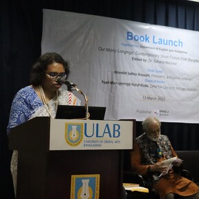 The Department of English and Humanities at the University of Liberal Arts Bangladesh (ULAB) organized a launching ceremony on March 13, 2022, for the book, Our Many Longings: Contemporary Short Fiction from Bangladesh edited by Dr. Sohana Manzoor , Associate Professor of the Department of English and Humanities, and published by Dhauli Books, India.