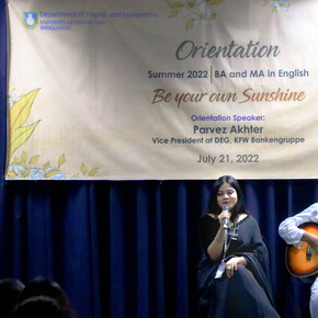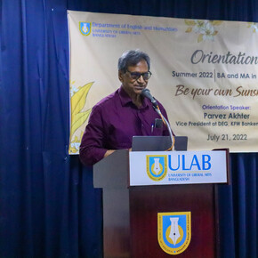 The Orientation Speaker at the Summer 2022 program was Mr. Parvez Akter, Vice President at DEG, KFW Bankengruppe, who shared his experiences as an English graduate who became successful in the banking business. He offered insightful advice and spoke of how students could become successful in their own ways.
