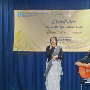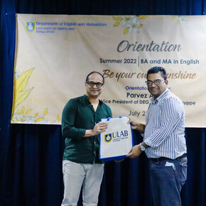 The Orientation Program of the Summer 2022 academic session of the Department of English and Humanities (DEH) was held on July 21, 2022, marking the new beginning for the students of BA and MA in English Programs. The Orientation theme this time was “Be Your Own Sunshine.” The event was held in the ULAB Research Building auditorium and offered the freshers an introduction to the faculty members and the department.