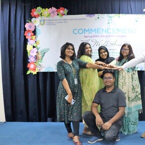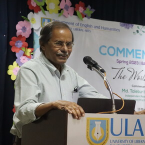 On May 13, 2023, the Spring 2023 Commencement program of ULAB’s Department of English and Humanities took place in the Research Building Auditorium. The theme for the event was “The World Awaits” and Md. Talebur Islam (Rupom) joined the event as the Commencement Speaker to motivate the graduating students with his career trajectory.