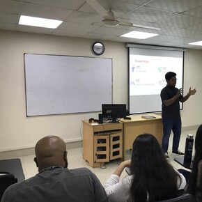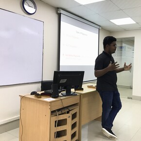 Mr. Islam initiated the workshop with an anecdote relating to the consequences of borrowing materials without citing the appropriate sources. Grabbing the audience's attention, he moved on to define plagiarism so that the attending students were familiarized with it. Then he proceeded to explain the different types of plagiarism that students normally encounter: Global Plagiarism, Paraphrasing Plagiarism, Verbatim Plagiarism, Mosaic Plagiarism, Self-Plagiarism, and Accidental Plagiarism.