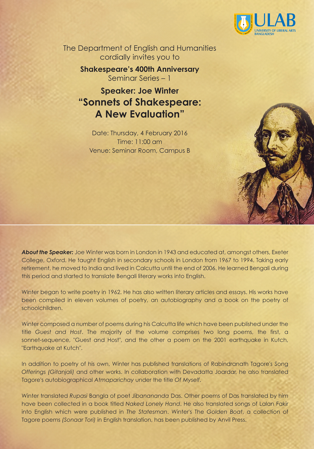 As part of the seminar series organized by the Department of English and Humanities to mark Shakespeare’s 400th death anniversary, Joe...