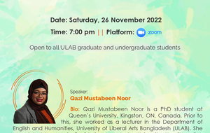 The Department of English and Humanities at the University of Liberal Arts Bangladesh (ULAB) arranged an online workshop on “Writing Statements of Purpose” for the students interested in studying abroad. The speaker, Ms. Qazi Mustabeen...