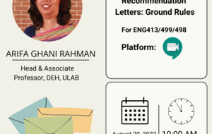 The Department of English and Humanities at the University of Liberal Arts Bangladesh organized a virtual workshop on “Recommendation Letters: Ground Rules” on August 20, 2022. The session was conducted by Ms. Arifa Ghani Rahman,...