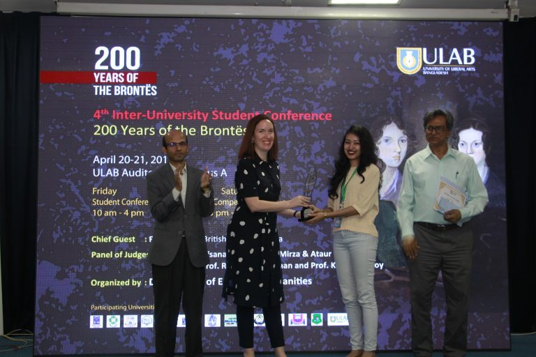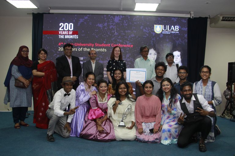 The Department of English and Humanities (DEH) at the University of Liberal Arts Bangladesh (ULAB) held its 4th Inter-University Student Conference and Cultural Competition on 21 and 22 April 2018 to commemorate the 200 years of the Brontë siblings, Charlotte, Emily, Anne and Branwell. The event featured student representatives from eleven public and private universities. Dr. Sohana Manzoor, Assistant Professor at DEH, was the Convener of the event.