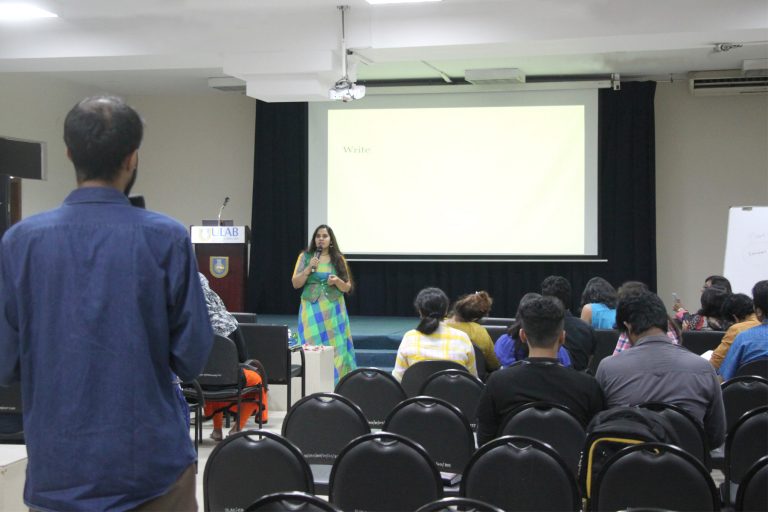 The workshop was attended by the Pro-Vice Chancellor of ULAB, Prof. Shamsad Mortuza, the Dean of the School of Arts and Humanities, faculty members of DEH, and interested students from all ULAB departments (graduate and undergraduate programs).
